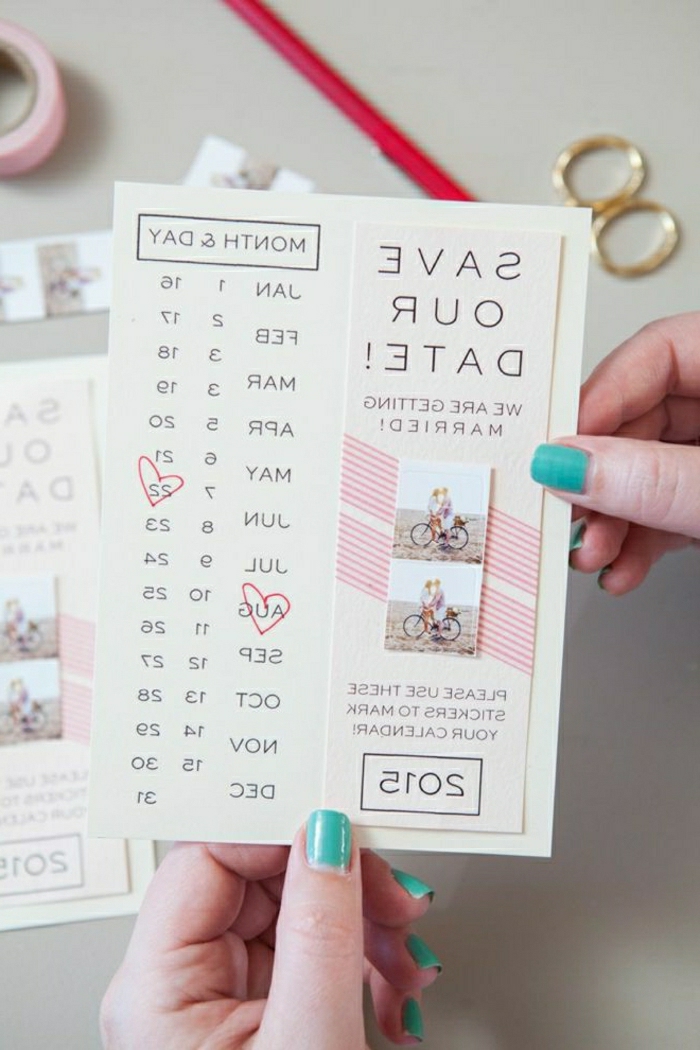 Wenn Sie zur Zeit Ihren Hochzeitstag organisieren und Ihre Hochzeitseinladungen noch nicht gewählt und bestellt haben, können Sie ein paar Ideen hier sehen.