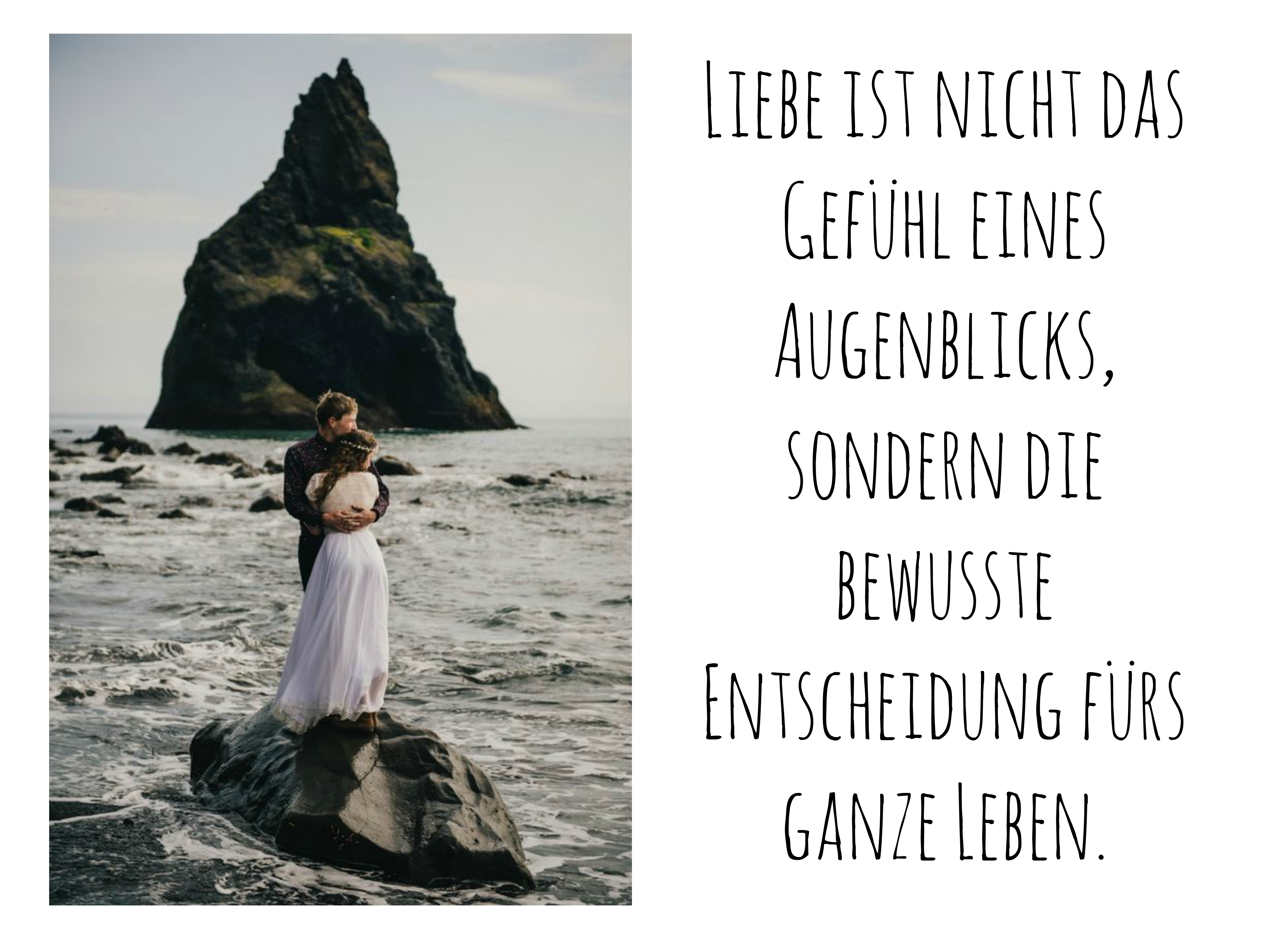 Hier ist noch eine inspirierende idee zum thema hochzeitssprüche ein bild mit einem brautpaar einer frau mit brautkleid einem meer streinen und einem liebesspruch