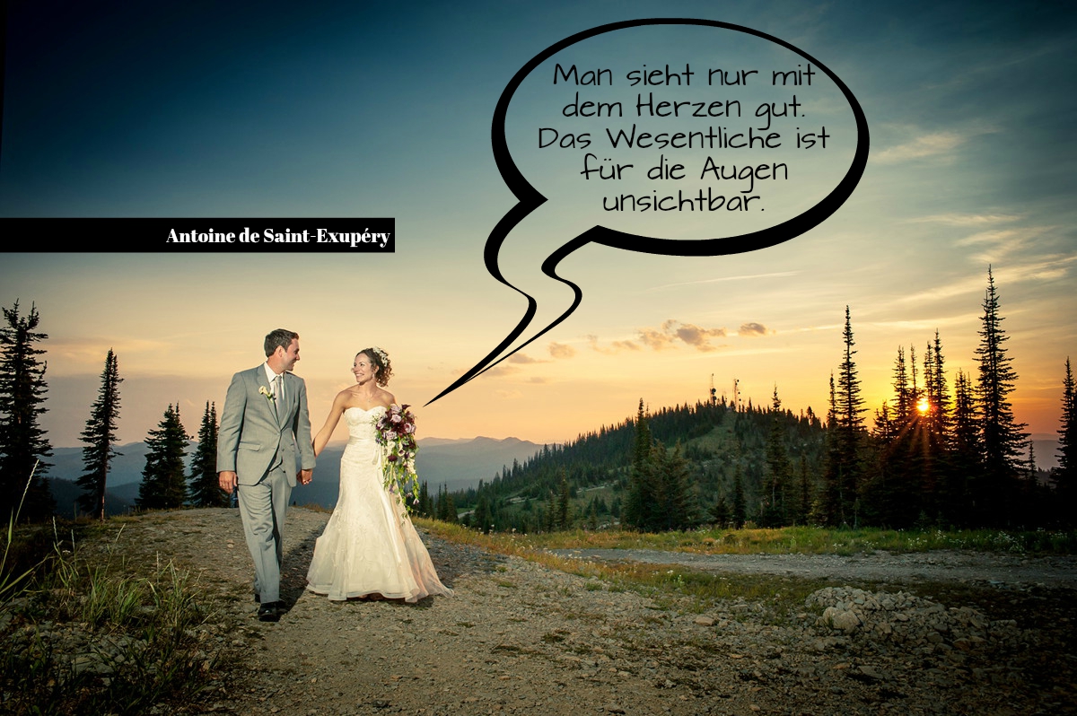 Inspirierende idee zum thema hochzeitssprüche ein bild mit einem liebespaar einer frau mit brautkleid und hochzeitssprüche von antoine de saint exupery