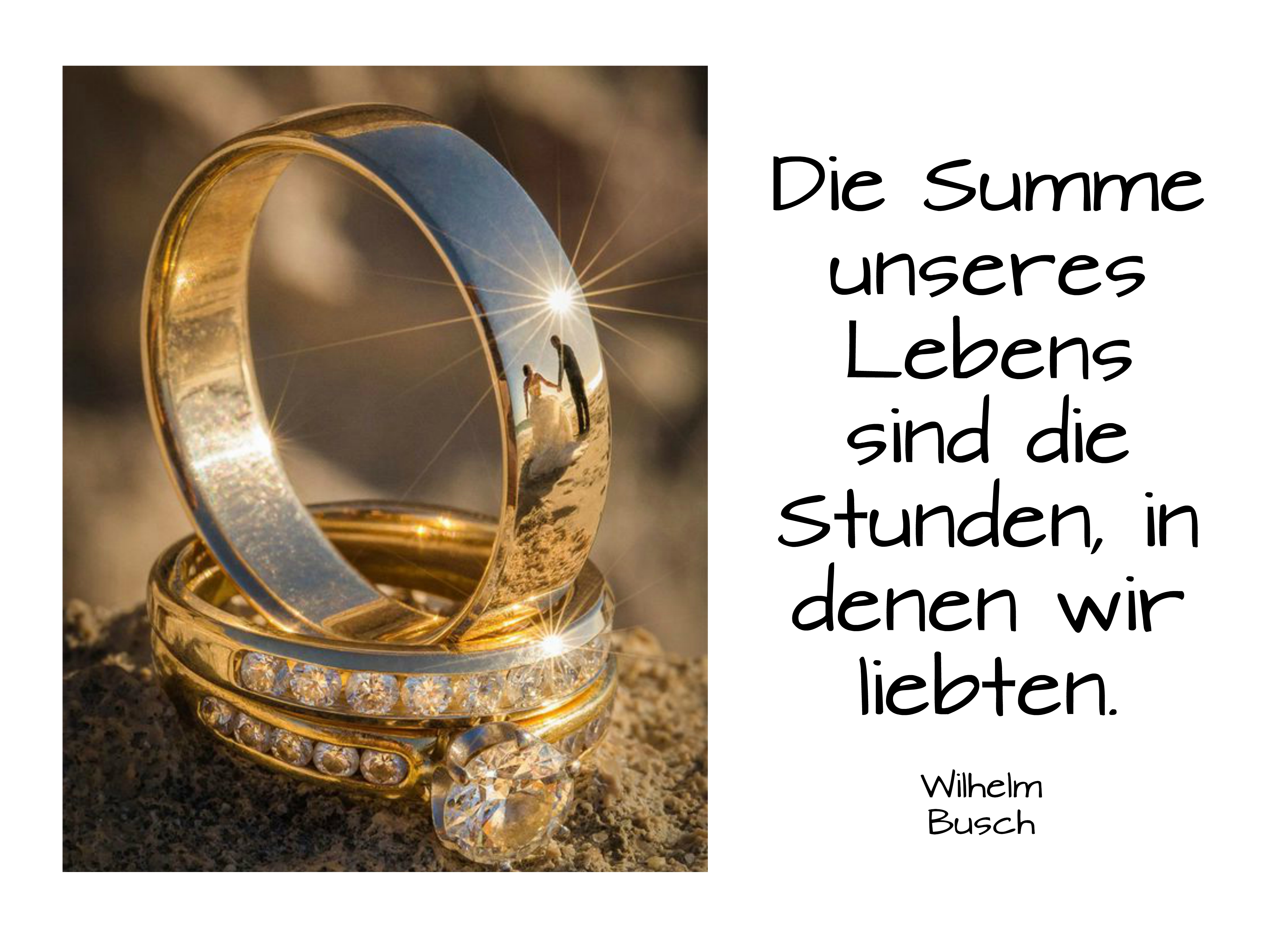 Zwei schöne goldene ringe mit diamanten und ein brautpaar und ein hochzeitsspruch von wilhelm busch