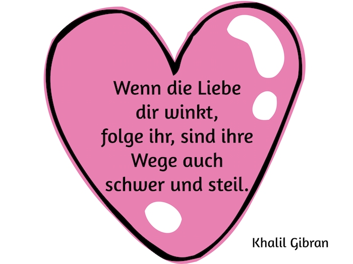 Jetzt zeigen wir ihnen ein schönes bild mit einem großen pinken herzen und einem tollen liebesspruch von khalil gibran