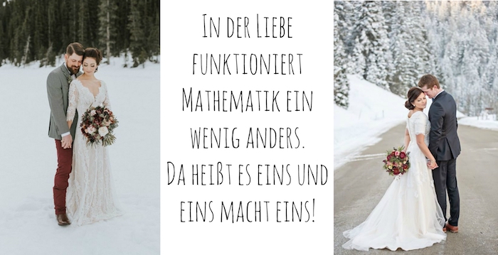 Werfen sie einen blick auf diese idee zum thema schöne sprüche hier sind tollebbilder mit brautpaar in einem wilden wald schnee und einer frau mit einem brautkleid
