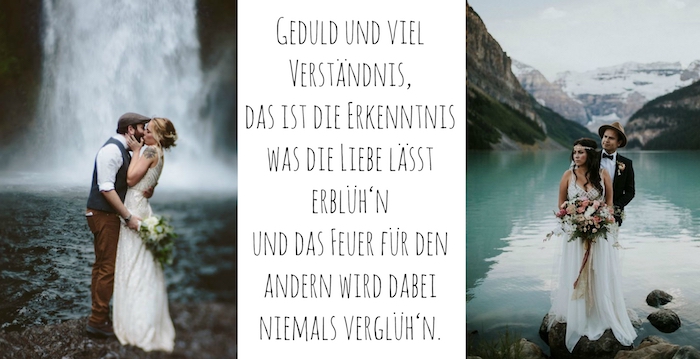 Idee zum thema schöne sprüche für hochzeit hier finden sie außerdem zwei tolle bilder miit brautpaar zwei frauem mit brautkleidern wasserfall und see