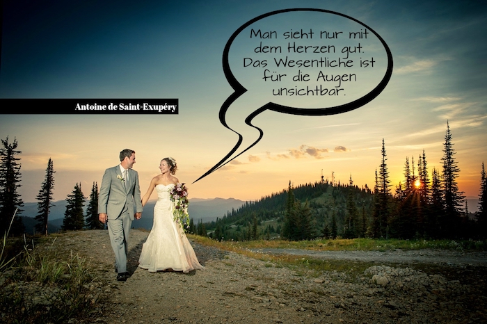 Inspirierende idee zum thema hochzeitssprüche ein bild mit einem liebespaar einer frau mit brautkleid und hochzeitssprüche von antoine de saint exupery