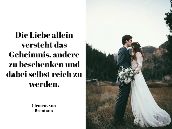 Noch einige hochzeitssprüche von clemens von brentano und ein brautpaar und eine frau mit einem schönen weißen brautkleid