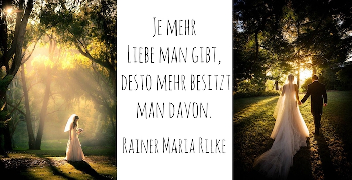 Werfen sie einen blick auf dieses bild mit einer jungen wald in einem wilden wald und mit einem brautkleid sie finden hier außerdem einen tollen hochzeitsspruch