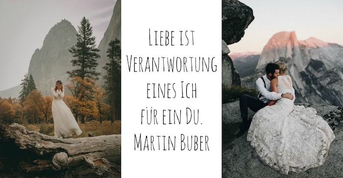 Werfen ske einen blick auf diese bilder mit einem liebespaar bergen und einer jungen frau in einem wilden wald und einem tollen hochzeitsspruch