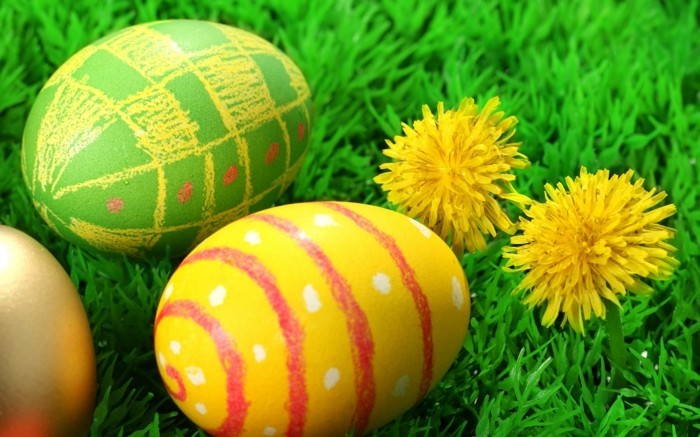 Wallpaper Ostern mit Eiern und Löwenzähnen