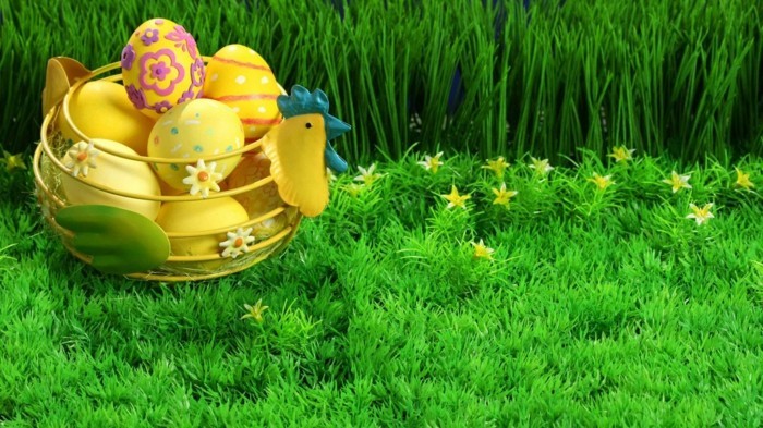 Wallpaper Ostern mit Hühnchenkorb mit–gelben Eier voll