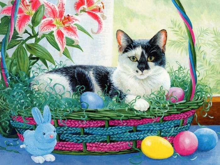 Ein originelles Ostern Hintergrundbild mit einer Katze