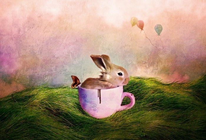 Hintergrundbild ostern mit Hase in einer Tasse