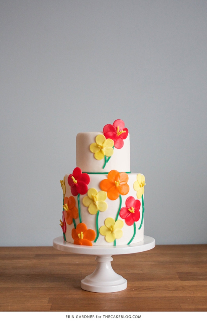 Fondant torte rezept geburtstag gelbe und rote blumen weißer grund geburtstagstorte dekorieren