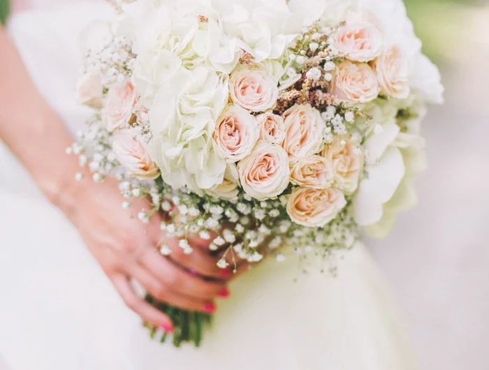 Häufiger Fehler: Den Strauß auswählen, bevor das Kleid feststeht. Der Strauß sollte immer das Kleid ergänzen, nicht mit ihm konkurrieren. Ein opulent besticktes Kleid verlangt nach einem schlichteren Strauß, während ein schlichtes Kleid durch ein üppiges Bouquet erst richtig zur Geltung kommt. Nehmen Sie immer ein Foto des Kleides mit zum Floristen!