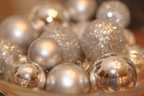 - In Silber- oder Goldfarbe gesprühte Tannenzapfen und Walnüsse.