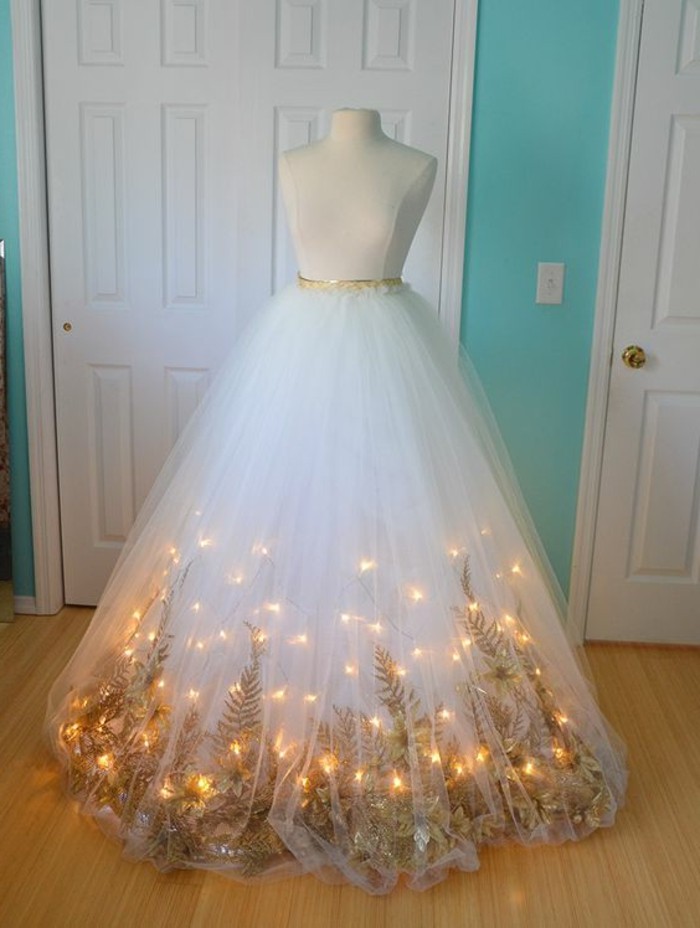Silvester kleider langer weisser rock weihnachtsmotive gold mini led lampen silvester outfits