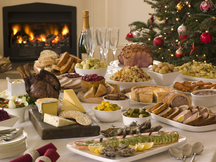 Boxing Day Buffet Lunch Christmas Tree and Log Fire