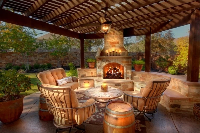 Die Feuerstelle markiert den Ort, aber die Atmosphäre entsteht durch die Details. Denken Sie an gemütliche Decken und Kissen in wetterfesten Boxen, kleine Beistelltische für Getränke und Snacks und vielleicht sogar an Outdoor-Lautsprecher für leise Hintergrundmusik. So wird der Platz am Feuer zur vollwertigen Erweiterung Ihres Wohnzimmers unter freiem Himmel.