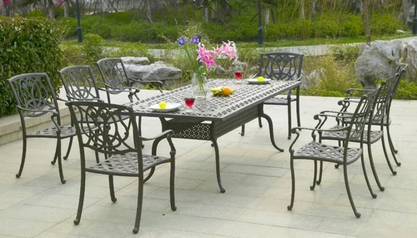 - Aluminium: Das ist der Bestseller. Leicht, stabil und kann nicht rosten. Die meisten Alumöbel sind pulverbeschichtet. Die Qualität dieser Beschichtung ist ALLES. Bei Billigmöbeln ist die Schicht hauchdünn und platzt beim kleinsten Stoß ab. Ein gutes Set aus pulverbeschichtetem Alu ist eine tolle, pflegeleichte Investition und liegt preislich meist so zwischen 250 € und 500 €.