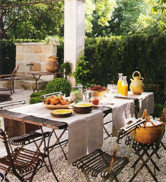 Terrassenboden aus stein großer esstisch und moderne stühle