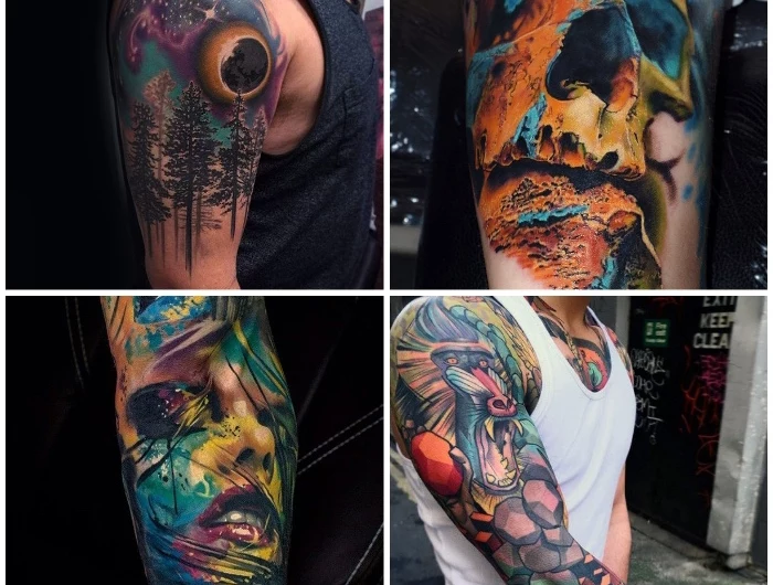 Farbig: Ideal für hyperrealistische Motive wie leuchtende Insekten, Edelsteine oder Weltraumszenen. Farben erzeugen eine unglaubliche Lebendigkeit, erfordern aber oft mehr Pflege, um vor dem Verblassen geschützt zu werden. Tinten von Marken wie World Famous Ink oder Intenze sind für ihre Leuchtkraft bekannt.