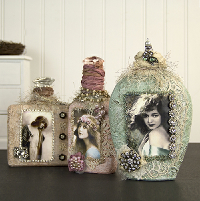 Shabby chic bilder drei vasen mit bildern