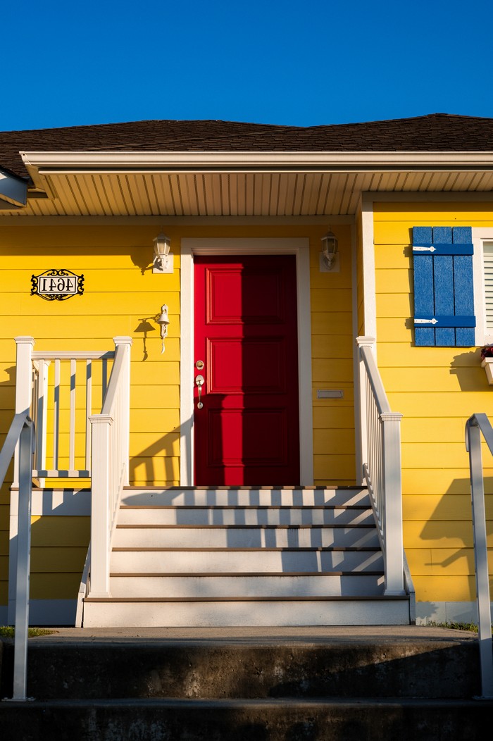 holzhaus oder massivhaus vorteile des holzhauses bio solar haus de gelbes holzhaus mit roter eingangstür weiße treppen