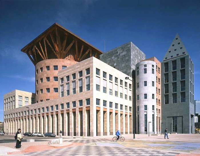 Die postmoderne Architektur ist eine Strömung in der Kulturgeschichte! Sie gehört zu den anderen Werken der Postmoderne. Der Still ist sehr ungewöhnlich.