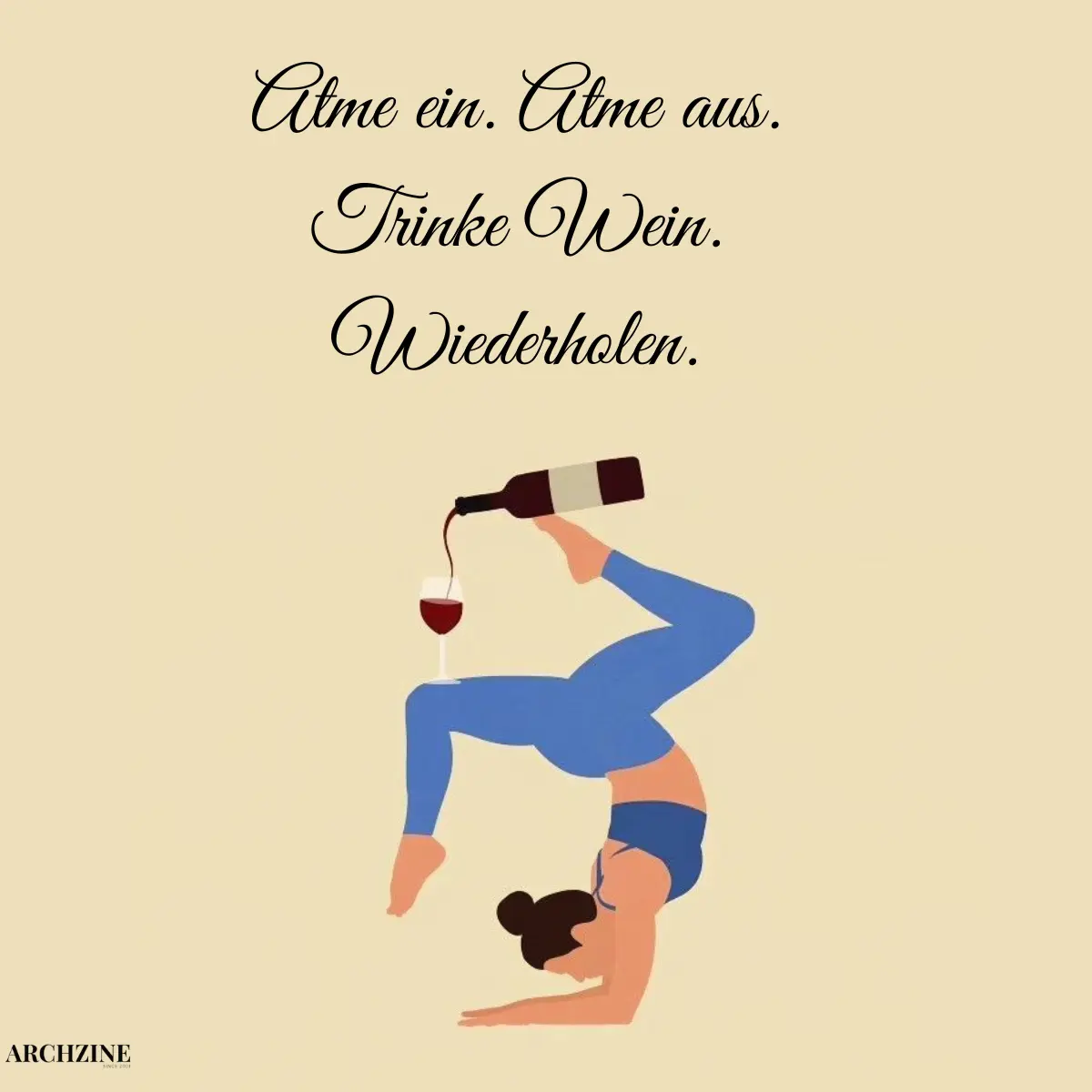 - „Ich kann nicht alle meine Probleme mit Yoga lösen… aber Wein hilft bei den anderen.“