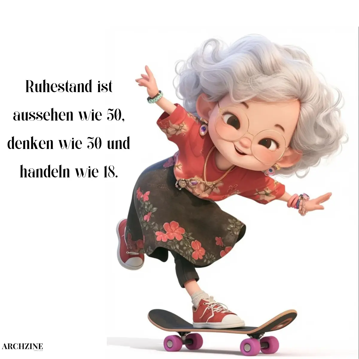 - „Ruhestand bedeutet nicht, langsamer zu werden, sondern Zeit zu haben, das Leben in vollen Zügen zu genießen. Möge jeder Tag dir neue Freude und spannende Abenteuer bringen!“