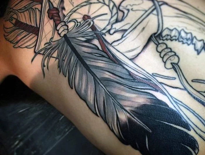 Eine Feder soll sich an deinen Körper schmiegen. Eine lange, gerade Feder über dem Ellenbogen sieht in Ruhe toll aus, aber geknickt wirkt sie gebrochen. Ein guter Tätowierer plant das mit dir zusammen und probiert die Schablone in verschiedenen Haltungen aus.