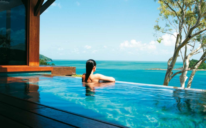 Häuser am strand blaues wasser im pool