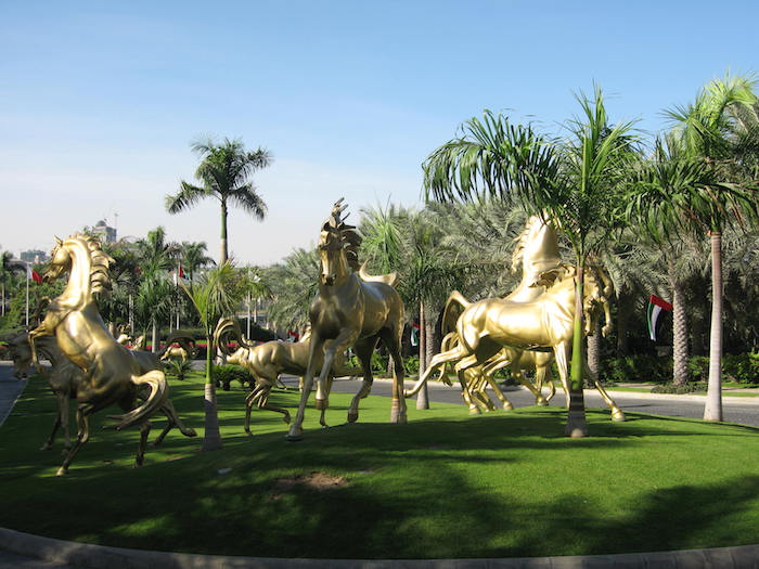 Wo liegt dubai schönes foto von den figuren von pferde pferdebilder goldene pferde statuen vor dem hotel