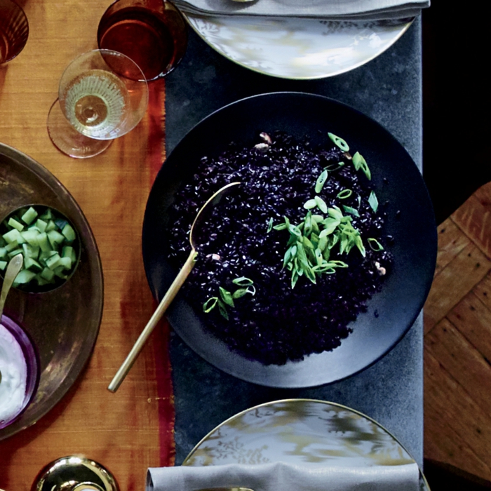 1. Forbidden Black Rice with Ginger and Cardamom + Ginger Turkey Meatballs + Red Dal with Mustard Seeds + Masala Prawns + A150901 Food & Wine + Reinventing the Holidays + Dec 2015