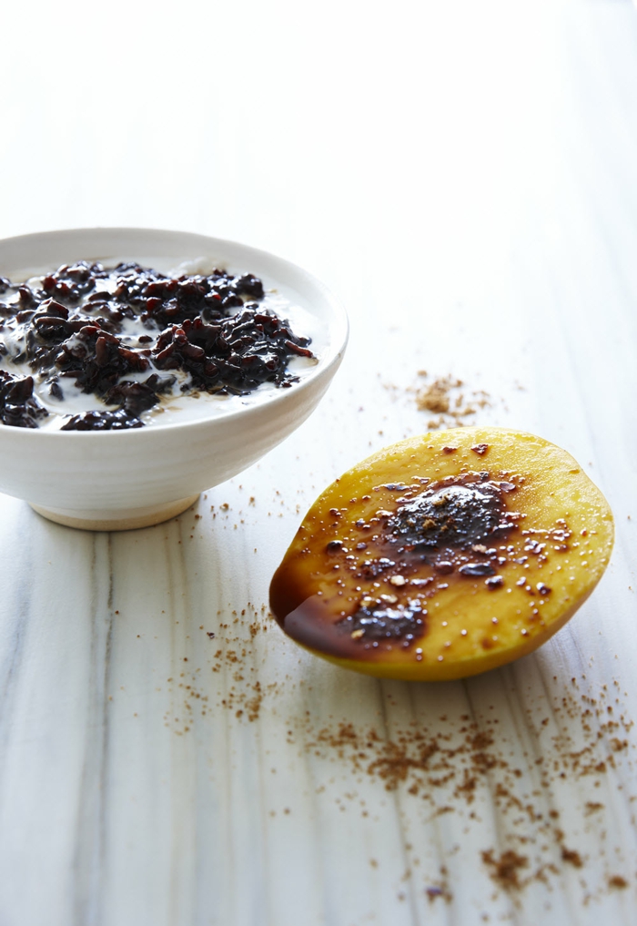 Roter reis gesund nachtischidee milchreis schwarzer reis kombination mit gegrilltem mango