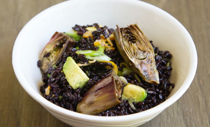 Schwarze reis mit gemüse zubereiten leckeres einfaches rezept avokado.schüssel