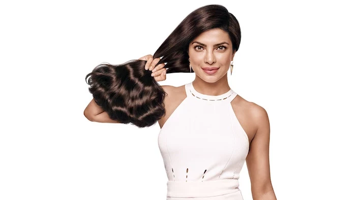 wie wachsen haare schneller, weiße hemdhose, goldene ohrringe, finger durch die haare fahren, haarfarbe mahagonni