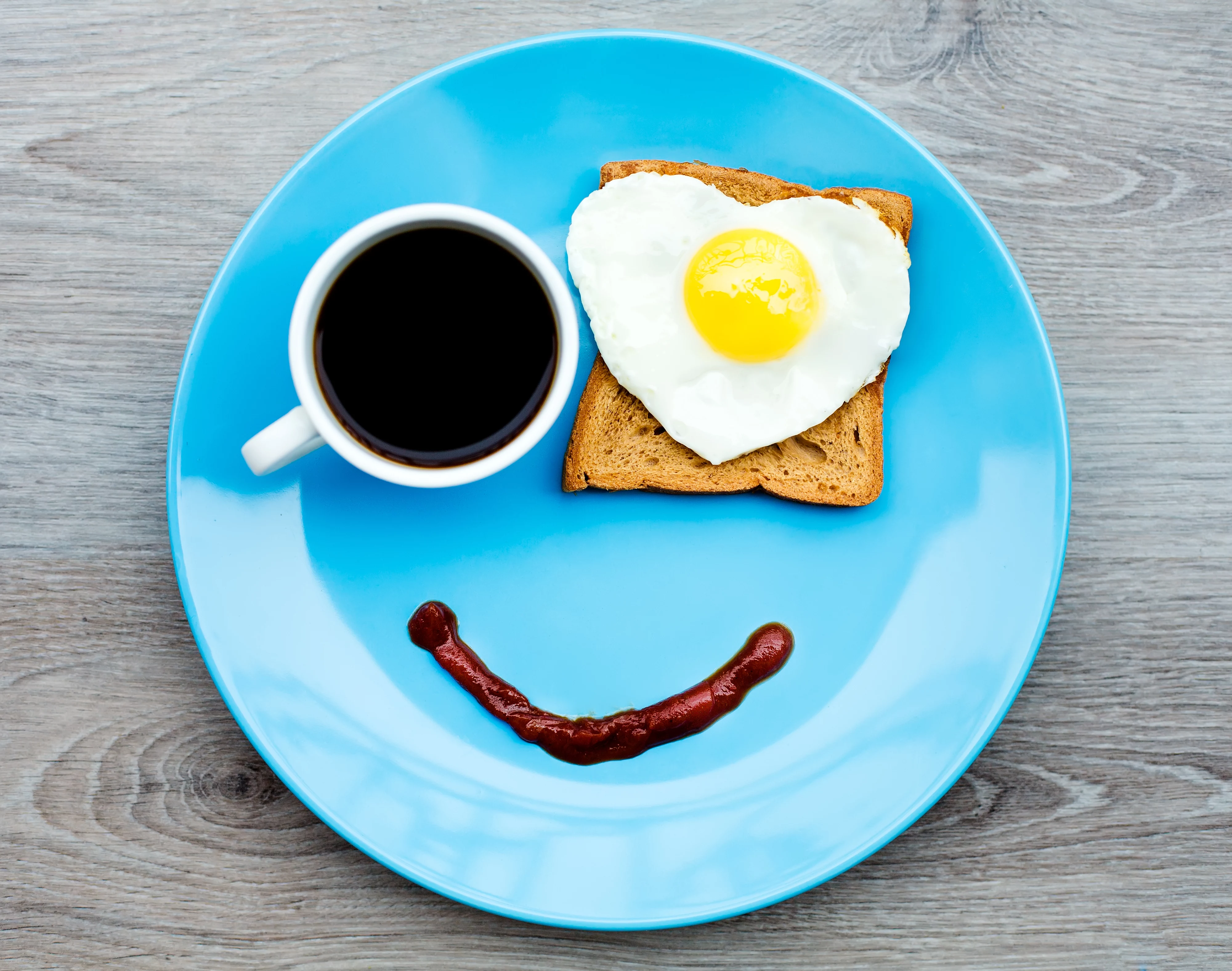 Guten morgen sprüche ein blaues teller wie ein gesicht geordnet mit kaffee als das eine auge und ei als das andere