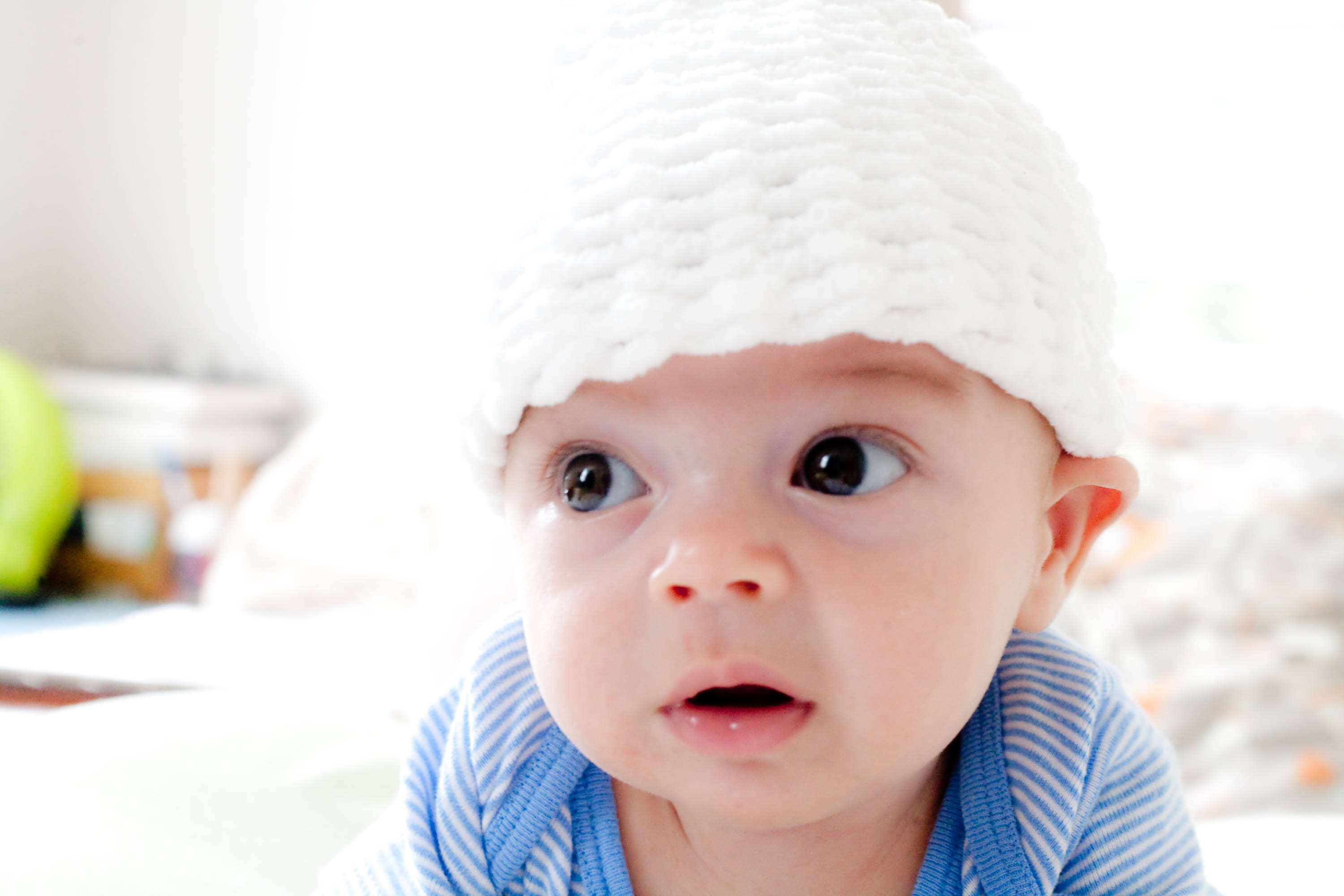 Guten morgen sprüche ein niedliches baby mit weißen mütze das sich gerade aufwacht
