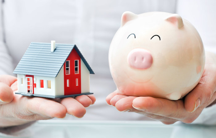 Geld sparen beim heizen frauenhände kleines haus sparbüchse rosa schwein spartipps