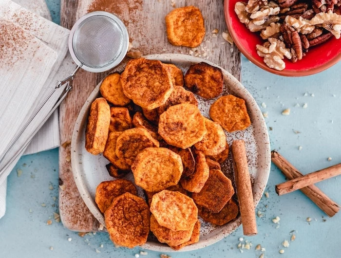 - Süßkartoffeln waschen und in gleichmäßige Scheiben schneiden.