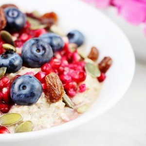 - Kalt & knackig: 3-4 Löffel Quinoa unter deinen Joghurt oder Quark mischen, Beeren und Nüsse dazu.