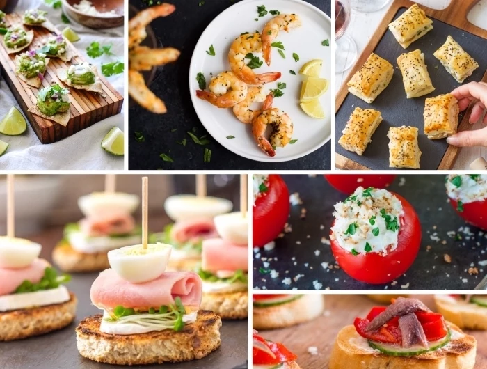 party essen schnell, bällchen mit käse, brotscheiben mit verschiedenen zutaten, partyrezepte