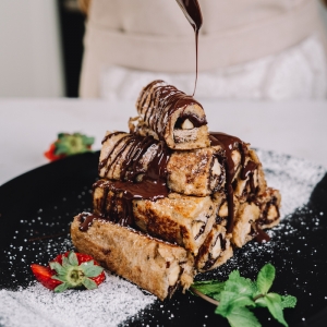 - Vor dem Servieren geben Sie die Schokolade in eine kleine Schüssel und lassen Sie sie in Intervallen schmelzen. Rühren Sie alle 10 Sekunden.
