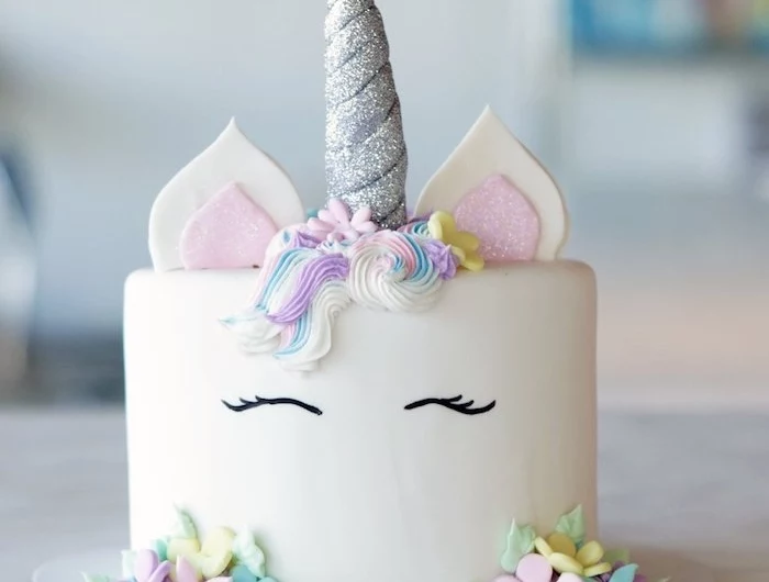 - Tag 3: Der schönste Teil – die Dekoration! Mähne aufspritzen, Horn und Ohren anbringen und mit Glitzer vollenden.