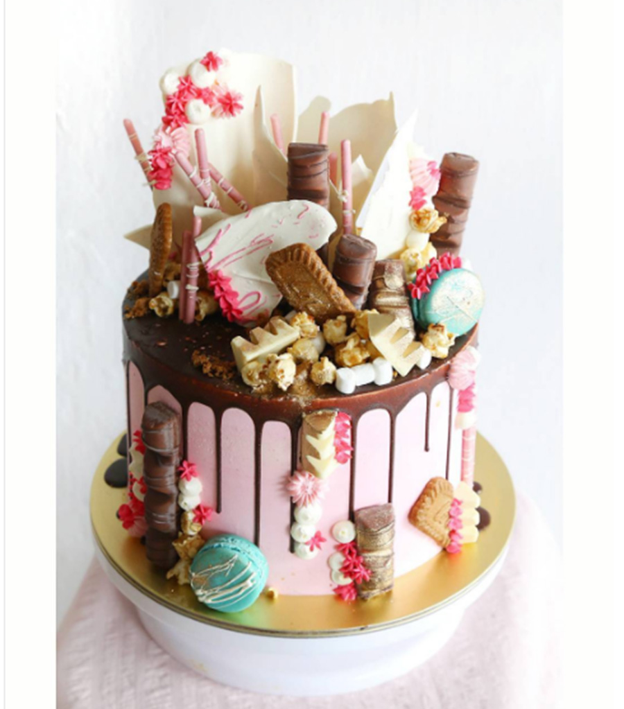 Kinderriegel torte eine rosa torte mit jegliche süßigkeiten und eine weiße schokolade