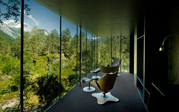 Traumreisen wunderschöne hotels stühle in einem gläsernen flur