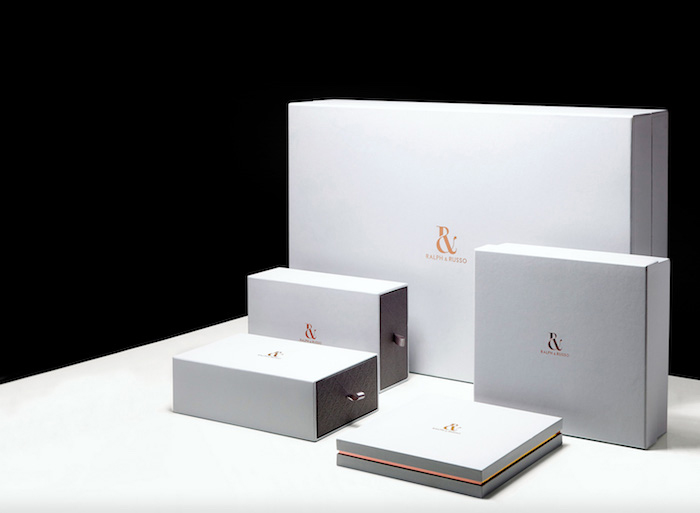 Weiße verpackung mit goldenen buchstaben set große und kleine schachteln und boxen