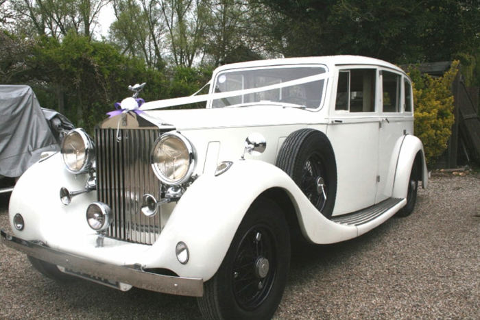 Vintage auto–weiß für hochzeit