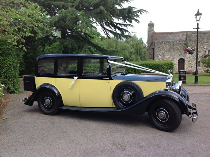 Vintage auto limousine rolls royce gelb und schwarz resized