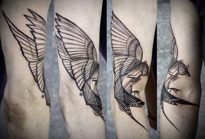 schwalbe bedeutung, oberarm tätowieren, fliegende vögel, kleine tattoo-motive